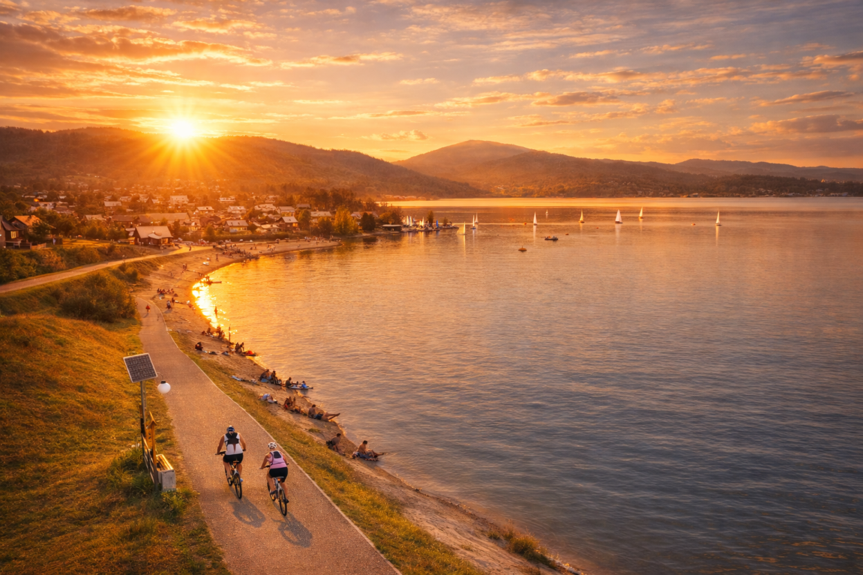 Zarzecze jest mniej znane, aniżeli Międzybrodzie Żywieckie - jednakże położenie i walory tej miejscowości są bardzo cenione. Każdy kto choć raz był w Zarzeczu z pewnością wróci do tego miejsca i będzie je miło wspominał. Zarzecze posiada ogromną liczbę stałych wczasowiczów, którzy szukają u nas noclegów kilka razy w roku. Zarówno w okresie letnim, jak i zimowym. Jedną z głównych zalet miejscowości Zarzecze jest jego położenie. Znajduje się ono w jednej linii pomiędzy Międzybrodziem Żywieckim (w odległości 7km), a Żywcem (odległości 4km). Patrząc kolejno prostopadle do poprzedniej linii zobaczymy Szczyrk (w odległości 10km), a po przekątnej Bielsko-Biała (w odległości 10km). Tak więc Zarzecze mieści się w centrum powiatu żywieckiego - co umożliwia łatwe i dogodne korzystanie z całego asortymentu atrakcji Żywiecczyzny. Tego typu położenie umożliwia korzystanie również z szerkiej gamy tras i wyciagów narciarskich. Drugim z podstawowych atutów Zarzecza to dostęp w szerokim pasie do jeziora żywieckiego oraz rzeki Żylica. Zarzecze posiada piękną plażę, gdzie wczasowicze korzystają z kąpieli wodnych oraz słonecznych. W pobliżu plaży do dyspozycji wczasowiczów pozostaje przystań żeglarska - a w niej szerokie zaplecze rowerków wodnych oraz żaglówek. Na plaży organizowane są różnego rodzaju imprezy - szanty. Przy plaży znajdują się punkty gastronomiczne, których tarasy znajdują się bezpośrednio przy jeziorze żywieckim. Kolejnym atutem Zarzecza jest spokój i bezpieczeństwo - jakie ono gwarantuje. Noc spędzona w Zarzeczu jeszcze długo pozostanie w Państwa pamięci. Zarzecze gwarantuje niczym niezakłócony wypoczynek. Jest to miejscowość wypoczynkowa dla osób, które cenią wypoczynek w cichym i przytulnym miejscu. Jest to idealne miejsce na wycieczki rowerowe, rolkowe, deskorolkowe lub inne. Wypoczynek w Zarzeczu umila również otaczająca aura z nad jeziora żywieckiego, która naturalnie neutralizuje duszne i parne dni. Ponadto specyficzne położenie Zarzecza skutecznie obniża występowanie uciążliwych komarów - pozwalając na spokojny wypoczynek również późnym wieczorem. Należy również wspomnieć o restauracjach i pizzeriach w pobliskich miejscowościach, które serwują dania na najwyższym poziomie - przy zachowaniu niejednokrotnie śmiesznie niskich cen. Można wiele jeszcze powiedzieć o tym pięknym zakątku Żywiecczyzny, ale żadne słowa nie opiszą noclegów w naszym zaciszu. Poczuć ten klimat można jedynie spędzając u nas miły wypoczynek. W pobliżu Zarzecza leżą również inne piękne turystyczne miejscowości. Najbliżej położona jest Bierna, która jest położona wyżej od Zarzecza. W tej lokalizacji można odnaleźć pensjonat, ranczo ze zwierzakami oraz hotel, gdzie można wynająć pokój lub apartament. Można tu wymienić również Tresną, która charakteryzuje się niesamowitymi widokami. Wpływa na to dość strome umiejscowienie miasteczka. Wymienione miejscowości położone są w gminie Łodygowice. Jadąc w stronę zapory odnajdziemy gminę Czernichów, w skład której wchodzą również Międzybrodzia. W tych okolicach można poszukiwać wymyślnych rowerków wodnych, które są w kształtach samochodów lub zwierząt. Warto tu również wspomnieć o gospodarstwie agroturystycznym oraz pokojach hotelowych w Kocierzu. Jest to jeszcze region bogaty w roślinność z piękną rzeką Kocierzanką. W okresie letnim sporo wczasowiczów kąpie się w łagodnej i czystej wodzie Kocierzanki. Spowalniacze rzeki tworzą miejsca podobne do basenów, ale tutaj woda jest wymieniane stale. Warto również zobaczyć i zmoczyć się w okolicznych potokach i strumykach górskich. Bazy noclegowe Żywca zawierają dużą ilość obiektów typu Kampingi. Jeszcze raz serdecznie zapraszamy do Kampingu w Zarzeczu; oferując wypoczynek w Ośrodku Wypoczynkowym "IGOR".