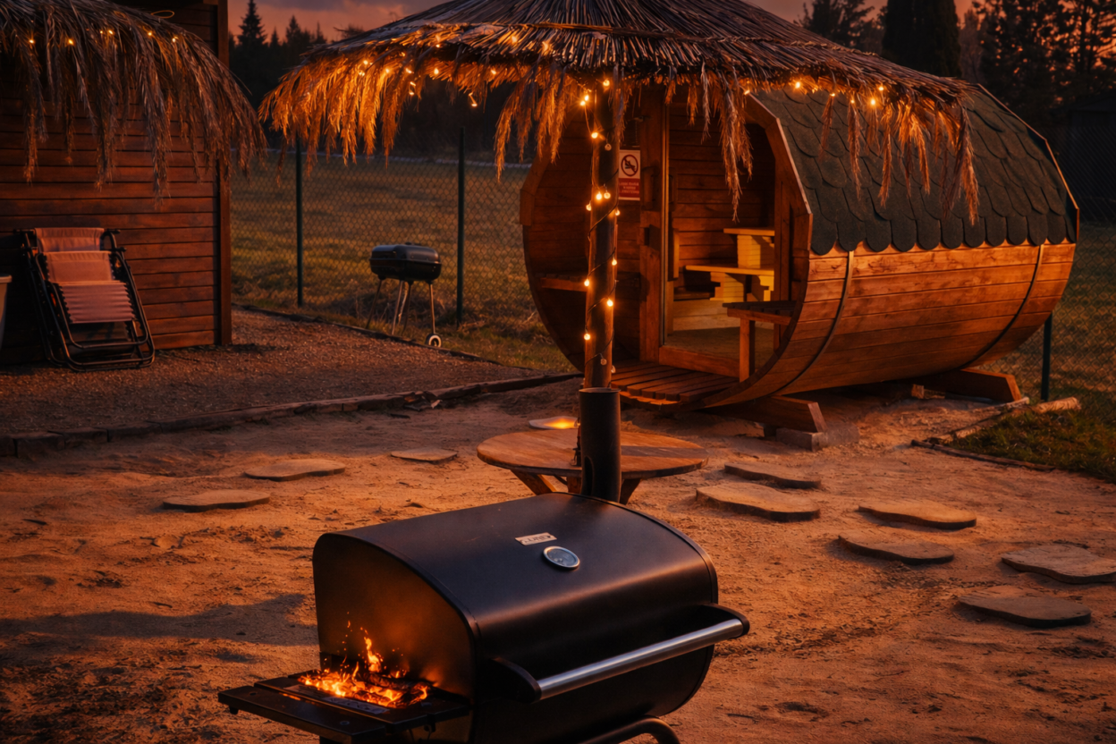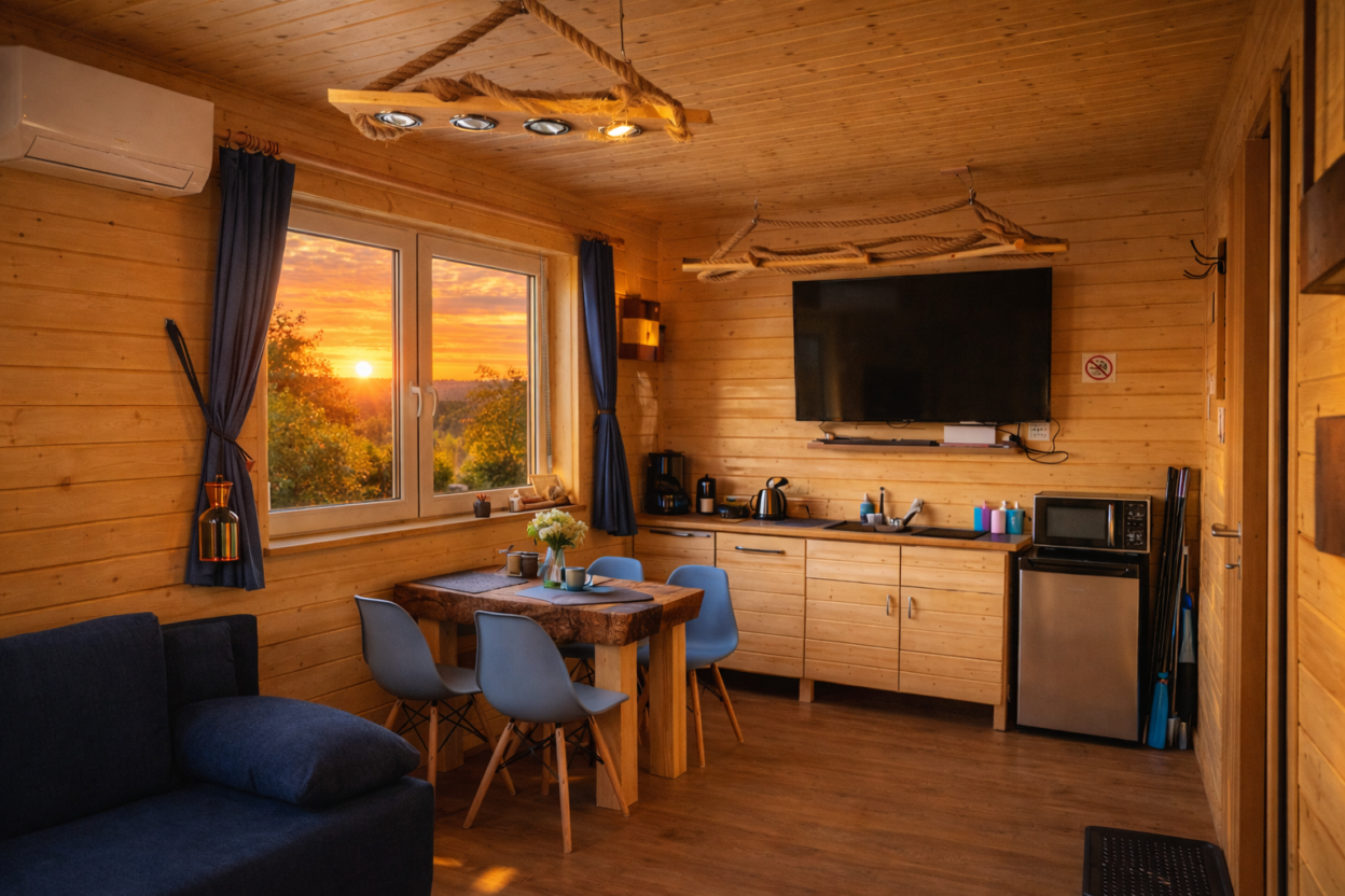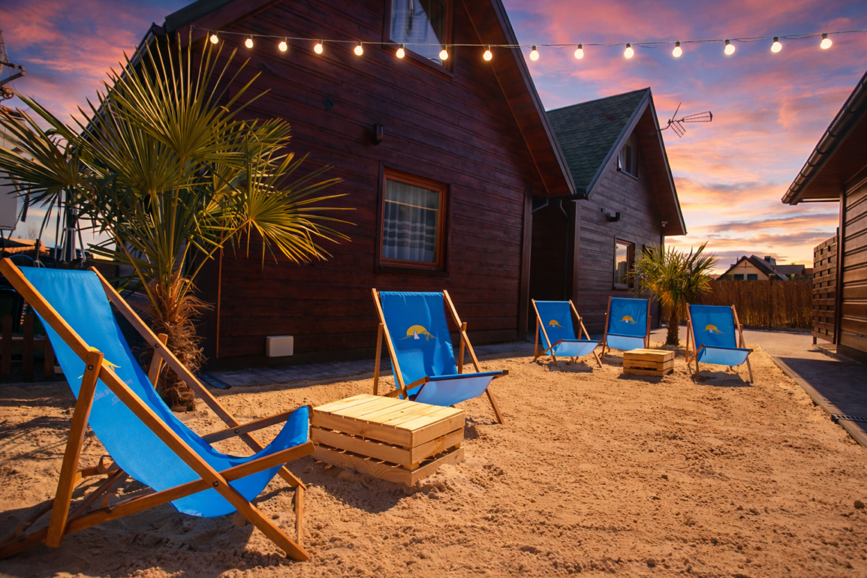 Dla naszych gości przygotowaliśmy rowery z przyczepkami dla dzieci, plac zabaw z gigantycznym koszem zabawek, w każdym domku stoliczek i krzesełko dla pociechy wraz z zestawem indywidualnych zabawek, kijki nordic walking i zestaw do badmintona wraz z siatką do gry. Ponadto do dyspozycji gości pozostaje: jezioro do wędkowania, plaża do wypoczywania, zimne lane piwo i smaczne obiady, przystań żeglarska, rowerki wodne, ogniska, długie spacery, duże ogólnodostępne boiska piłki nożnej oraz regionalne imprezy - super przygoda blisko natury. Wszyscy Nasi Goście mogą korzystać z licznych rabatów w zaprzyjaźnionych obiektach, tj. aquaparki, restauracje, parki linowe, parki rozrywki, itp. oraz z kilkunastu rodzai masaży oraz usług kosmetycznych.